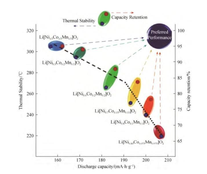 NCM 中,鎳是主要的氧化還原反應(yīng)元素,因此,提高鎳含量可以有效提高NCM 的比容量。高鎳含量NCM材料(Ni的摩爾分?jǐn)?shù)≥0.6)具有高比容量和低成本的特點(diǎn),但也存在容量保持率低,熱穩(wěn)定性能差等缺陷。高鎳 NCM 材料的性能和結(jié)構(gòu)與前驅(qū)體的制備工藝緊密相關(guān),不同的條件直接影響產(chǎn)品的最終結(jié)構(gòu)和性能。