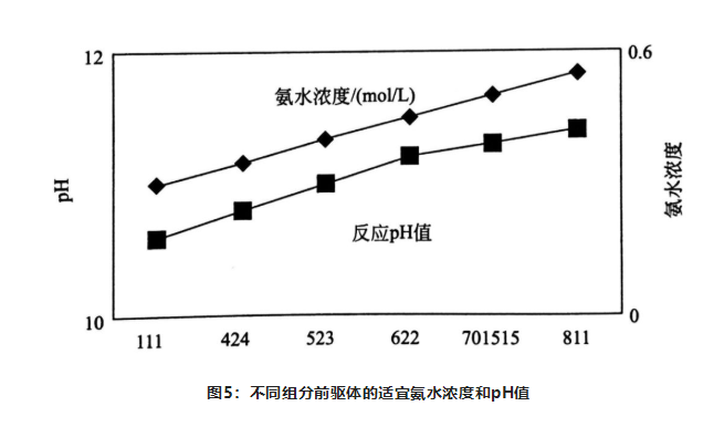 溫度主要是影響化學(xué)反應(yīng)速率。在前驅(qū)體的反應(yīng)中,溫度越高反應(yīng)速率越快,但是溫度過(guò)高會(huì)造成前驅(qū)體氧化,進(jìn)而造成反應(yīng)過(guò)程無(wú)法控制、前驅(qū)體結(jié)構(gòu)改變等問(wèn)題,所以在不影響反應(yīng)的前提下溫度盡量高一點(diǎn)。在反應(yīng)過(guò)程中pH會(huì)隨著溫度的降低而升高,所以維持溫度的恒定也很重要。
